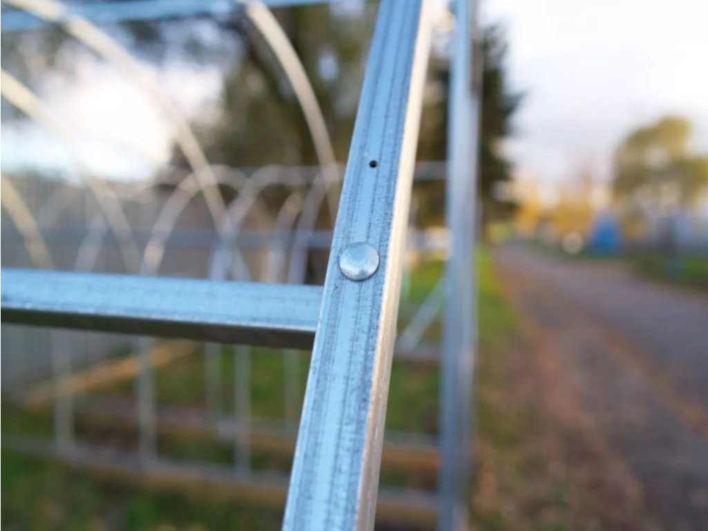 Skleník má na koncích 2 dveře, 2 okna pro průchozí větrání. Jeho rám se vyrábí provedeních ze žárově pozinkovaných trubek 20x20mm. Vzdálenost mezi oblouky je 100 cm. Design má celosvařované fasády, které zajišťují jednoduchou montáž a pevnost rámu. Ve skleníku jsou již vytvořeny otvory pro šrouby.