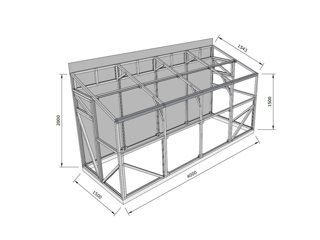 Skleník ke stěně 1,5x4m - 4mm