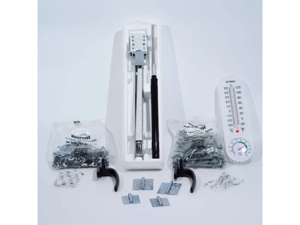 Přední a zadní čela skleníku jsou z výroby svařené a tvoří jednolitý celek. Obsahem dodávky je kompletní skleník = nosná konstrukce (včetně dveří a oken), veškeré potřebné spojovací prvky + polykarbonátové desky.