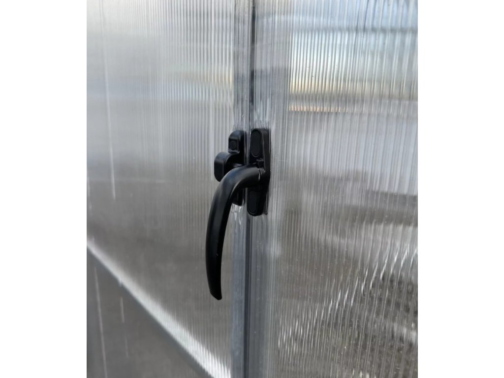 Přední a zadní čela skleníku jsou z výroby svařené a tvoří jednolitý celek. Obsahem dodávky je kompletní skleník = nosná konstrukce (včetně dveří a oken), veškeré potřebné spojovací prvky + polykarbonátové desky.