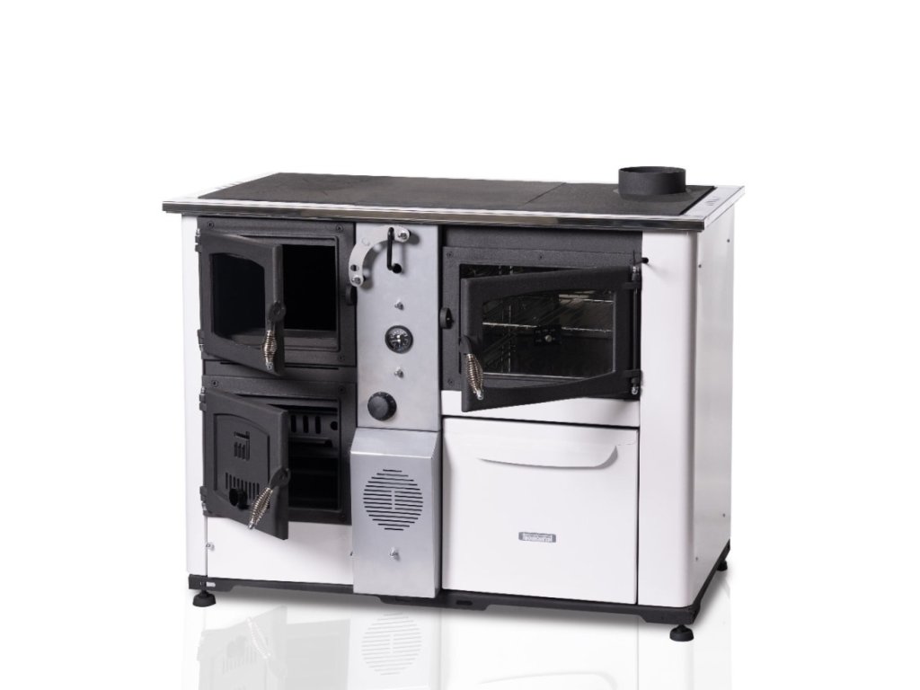 Teplovodní sporák na tuhá paliva TEMY PRO P 25 s troubou - bílý, pravý