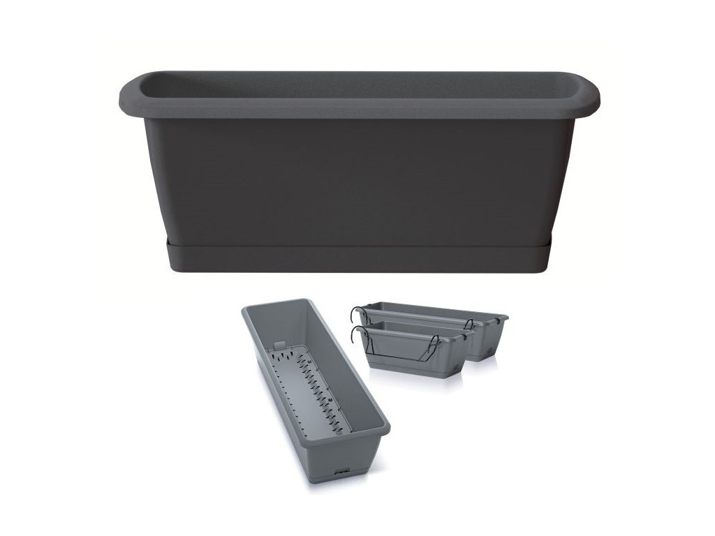 Lehký plastový truhlík se zavlažovacím systémem a držákem vhodný pro celoroční použití venku i v interiéru. Jeho povrch se snadno čistí a je odolný vůči povětrnostním vlivům.