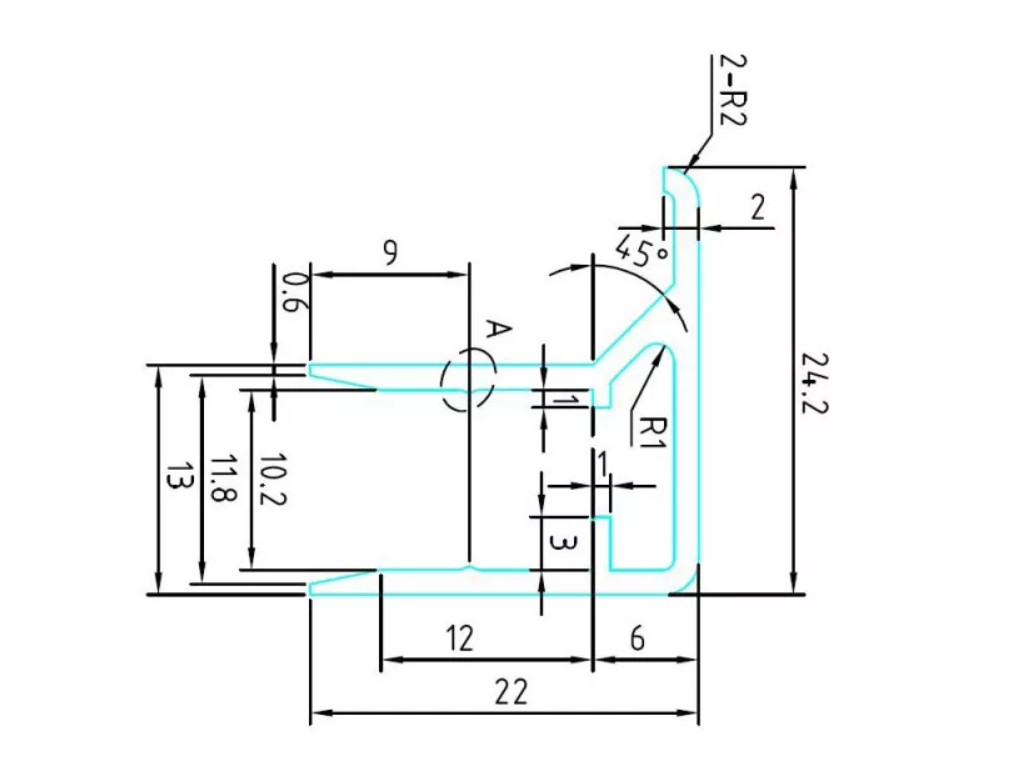 Prodloužená spodní hrana profilu zajišťuje snadnější odvod a odkapávání vody na dolní straně prosklení (u okapu).