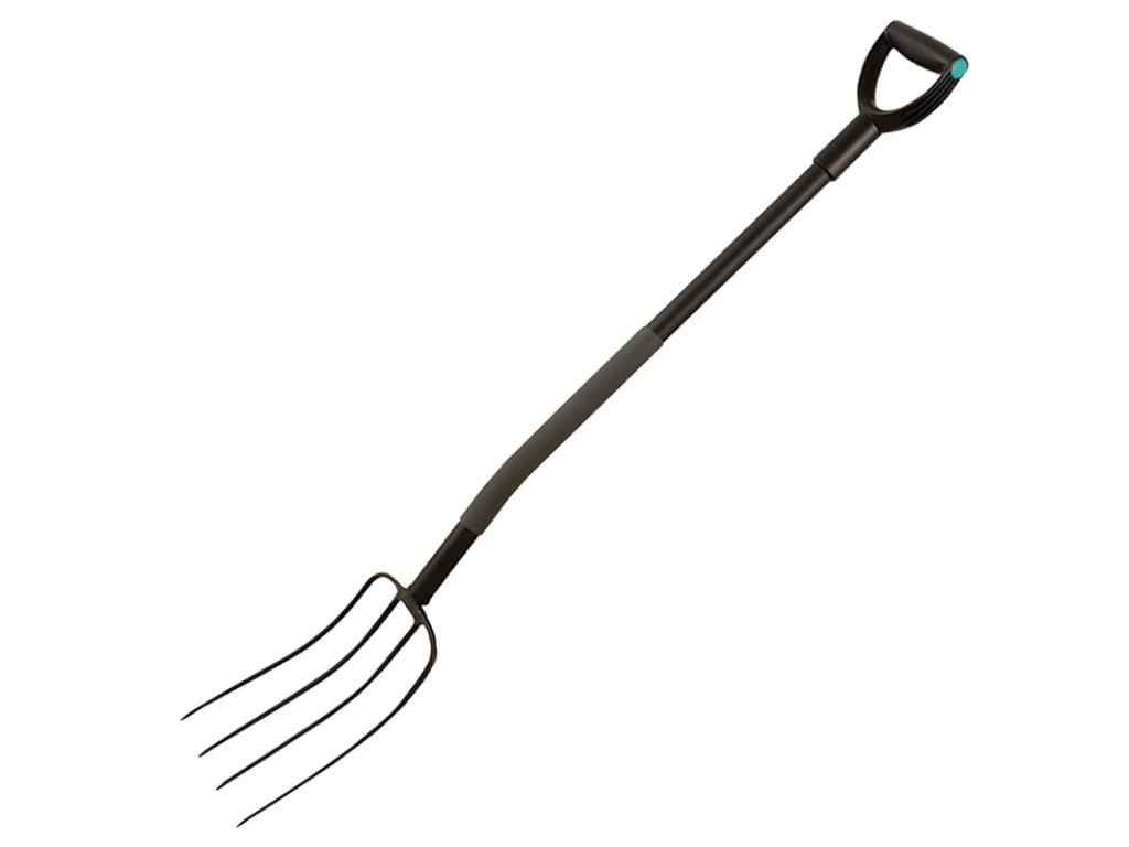 Vidle mají kovovou násadu doplněnou o protiskluzový grip a zakončení plastovým madlem ve tvaru D pro pohodlnější práci.