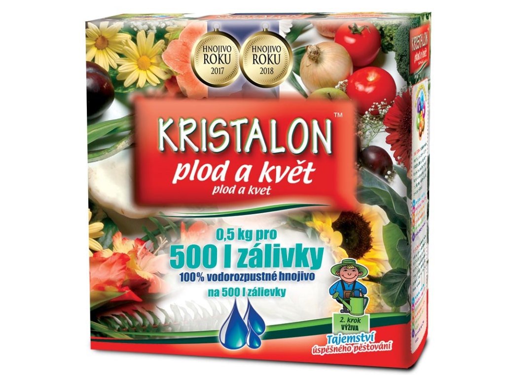 Kristalon Plod a květ je krystalické ES hnojivo, vodorozpustné a určené pro rychlejší start produkčního období rostlin. Podporuje vyšší násadu a vybarvení květů a plodů. Kristalon je univerzálně použitelný pro ovoce, zeleninu, okrasné rostliny včetně balkonových, ovocné stromy a keře, vinnou révu. Zamezuje žloutnutí listů.