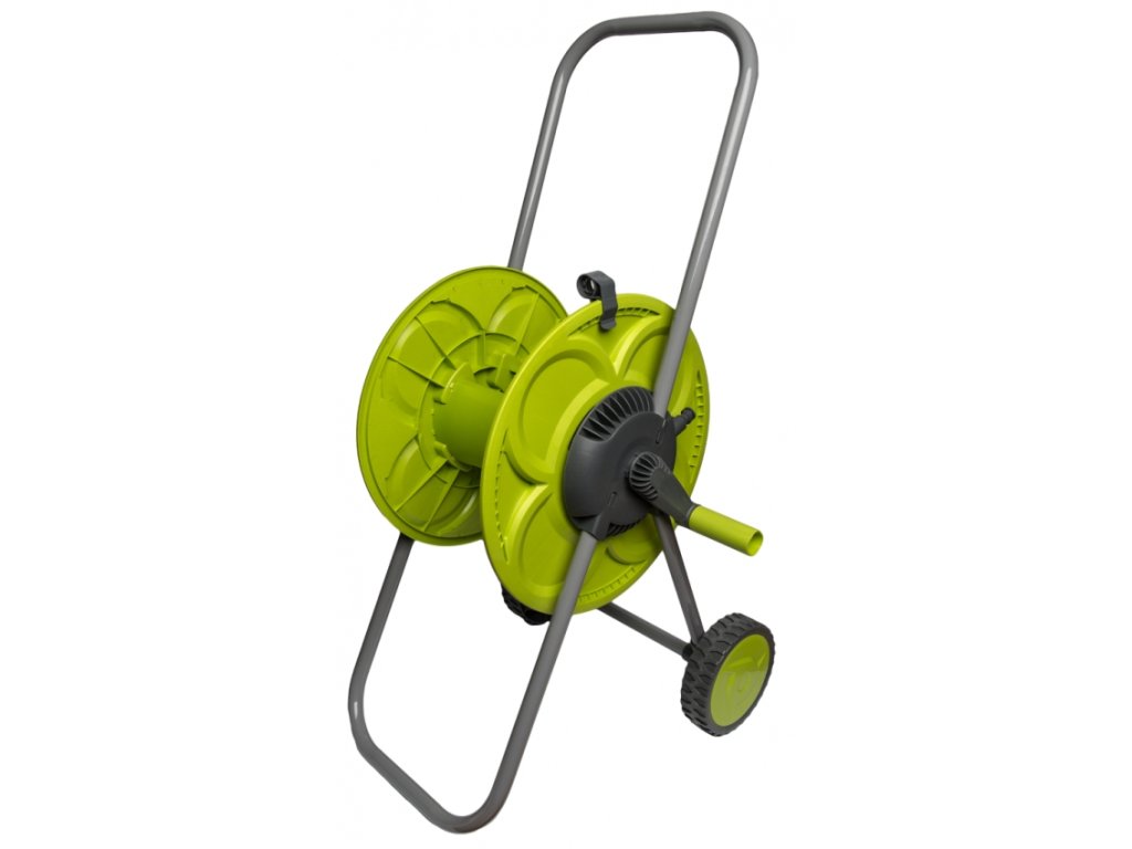 Vozík na zahradní hadici BRADAS Lime Line Clover s lehkou a odolnou konstrukcí. Jeho buben je vyrobený ze silného plastu odolného vůči UV záření, rzi a korozi. Dlouhá kovová rukojeť usnadňuje manipulaci. Vybavený držákem. Otočné připojení konektoru zabraňuje kroucení hadice při jejím odvíjení a převíjení.