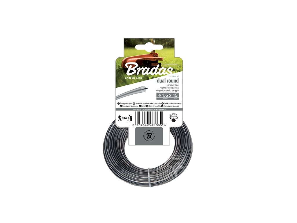 Kulatá žací struna BRADAS Ripper Dual 2,4 mm x 50 je odolná, zesílená dvoukomponentní struna pro sekačky trávy.