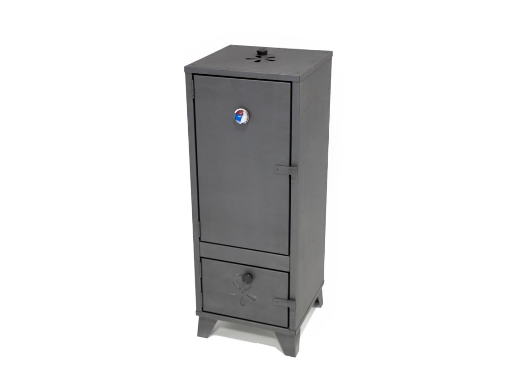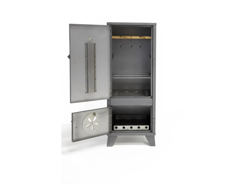 Prostorná udírna z kvalitní oceli pro úpravu pokrmů jako je maso, ryby, sýry atd. Uzení teplým i studeným kouřem.