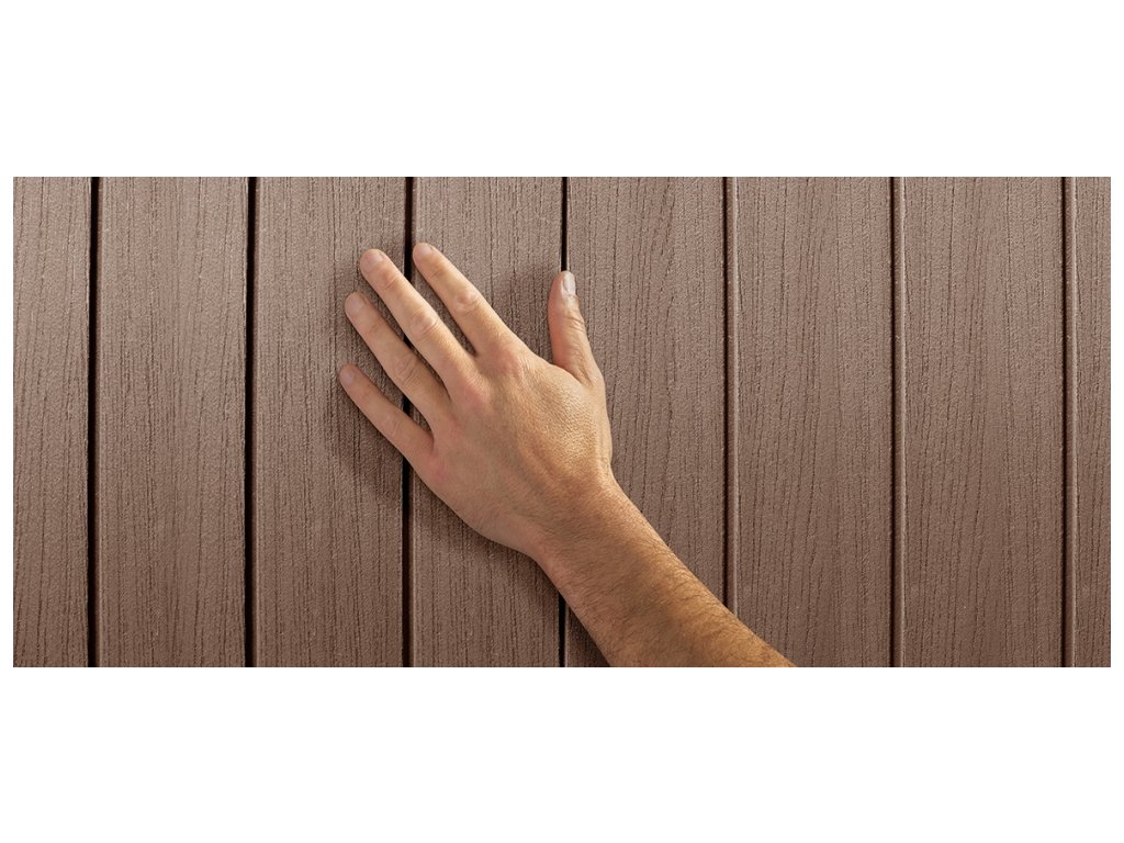 - dům je postaven z panelů vyrobených z nejnovějšího materiálu (vylepšený kompozit) Evotech+ se strukturou imitující dřevo