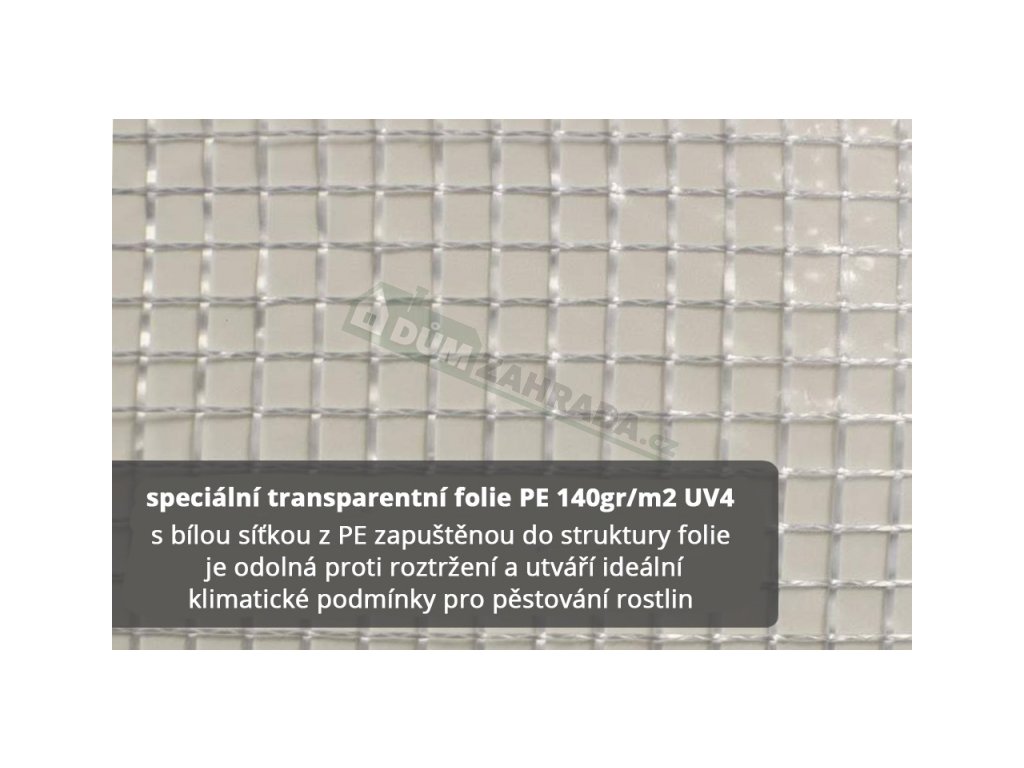 - Transparentní vrstva PE fólie 140 g / m2 filtr UV4 dodává pozoruhodné vlastnosti termoregulace a maximální propustnosti světla