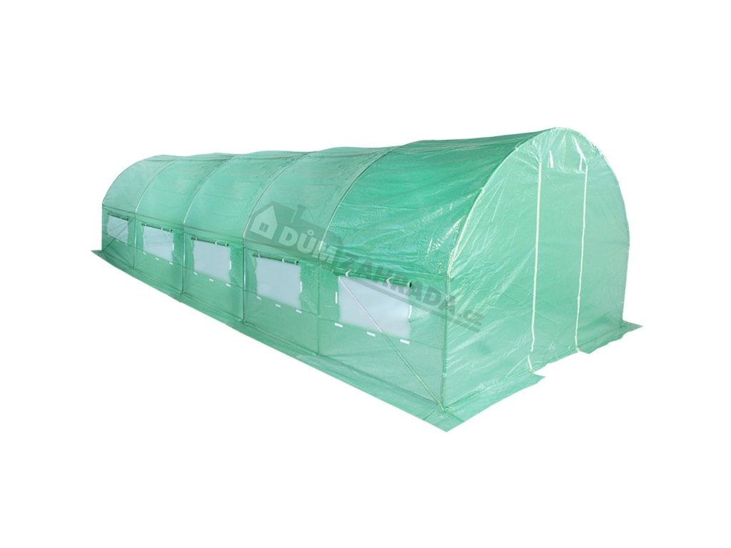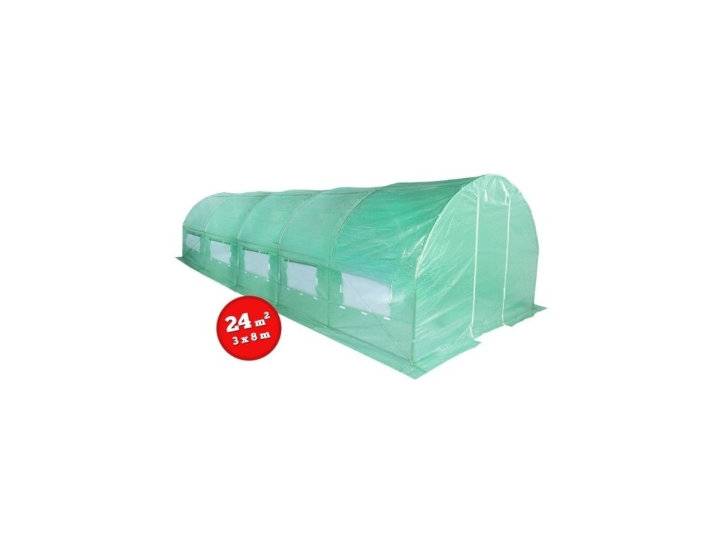 Zahradní fóliovník VespaGarden zelený 3x8m (24m2) je vyroben z vysoce kvalitních materiálů. Ocelová pozinkovaná konstrukce je doplněna plachtou z polyethylénu s UV filtrem UV-4. Zapuštěná polypropylenová síťka zvyšuje pevnost plachty a zabraňuje jejímu trhání. Boční stěny fóliovníku mají okna opatřená moskytiérou, která chrání před pronikáním škůdců a hmyzu. Okna zároveň slouží k ventilaci a lepší regulaci klimatu uvnitř fóliovníku. Vstup je dostatečně široký a snadno uzavíratelný pomocí zipů. Výška fóliovníku umožňuje komfortní provádění prací spojených s péčí o rostliny.