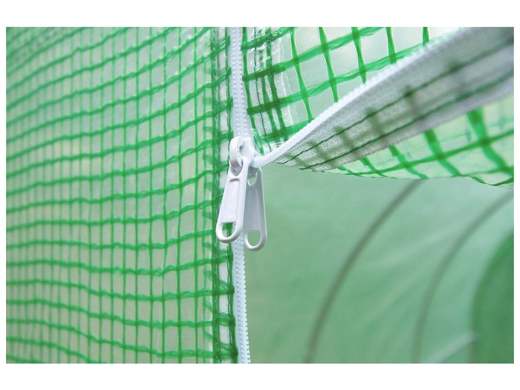 Zahradní fóliovník Focus Garden zelený 4x10m (40m2) je vyroben z vysoce kvalitních materiálů. Ocelová pozinkovaná konstrukce je doplněna plachtou z polyethylénu 140gr./m2 s UV filtrem UV-4. Fóliovník má dva vstupy o šířce 125 cm. Zapuštěná polypropylenová síťka zvyšuje pevnost plachty a zabraňuje jejímu trhání. Boční stěny fóliovníku mají okna opatřená moskytiérou, která chrání před pronikáním škůdců a hmyzu. Okna zároveň slouží k ventilaci a lepší regulaci klimatu uvnitř fóliovníku. Vstup je dostatečně široký a snadno uzavíratelný pomocí zipů. Výška fóliovníku umožňuje komfortní provádění prací spojených s péčí o rostliny.