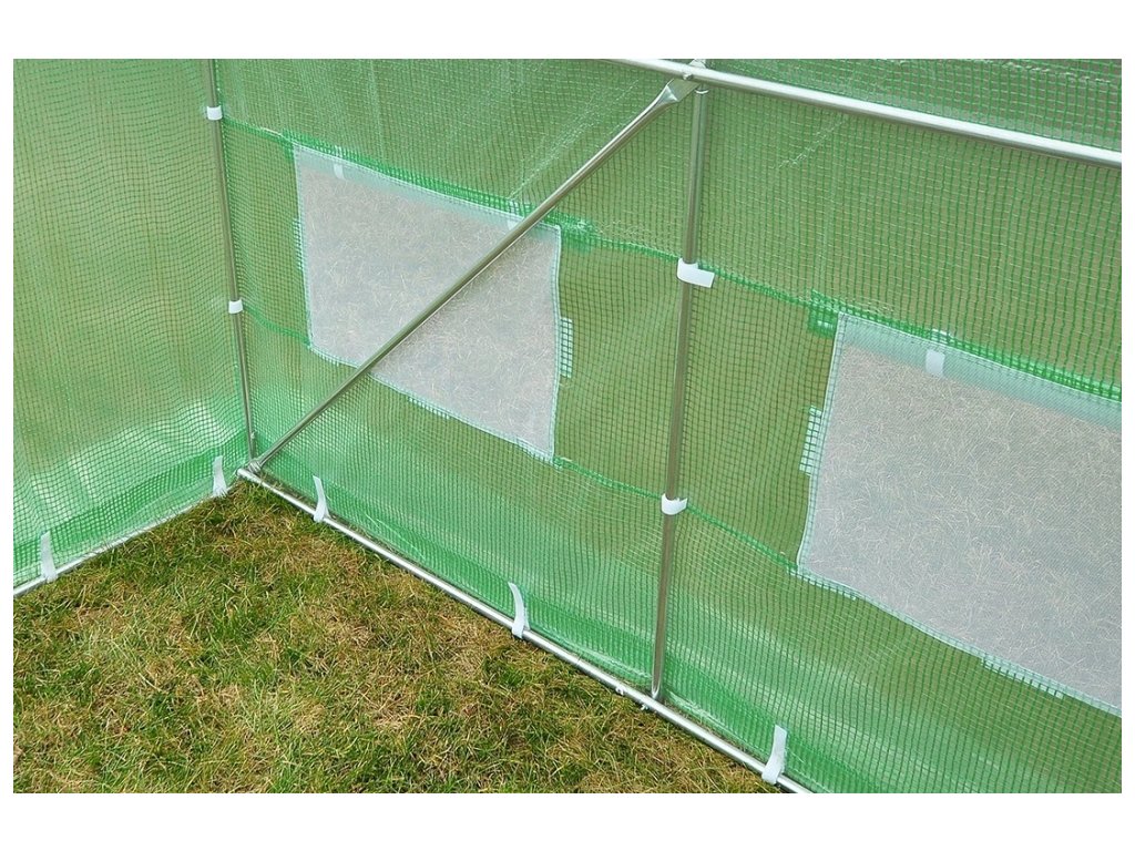 Zahradní fóliovník Focus Garden zelený 4x12m (48m2) je vyroben z vysoce kvalitních materiálů. Ocelová pozinkovaná konstrukce je doplněna plachtou z polyethylénu 140gr./m2 s UV filtrem UV-4. Fóliovník má dva vstupy o šířce 125 cm. Zapuštěná polypropylenová síťka zvyšuje pevnost plachty a zabraňuje jejímu trhání. Boční stěny fóliovníku mají okna opatřená moskytiérou, která chrání před pronikáním škůdců a hmyzu. Okna zároveň slouží k ventilaci a lepší regulaci klimatu uvnitř fóliovníku. Vstup je dostatečně široký a snadno uzavíratelný pomocí zipů. Výška fóliovníku umožňuje komfortní provádění prací spojených s péčí o rostliny.