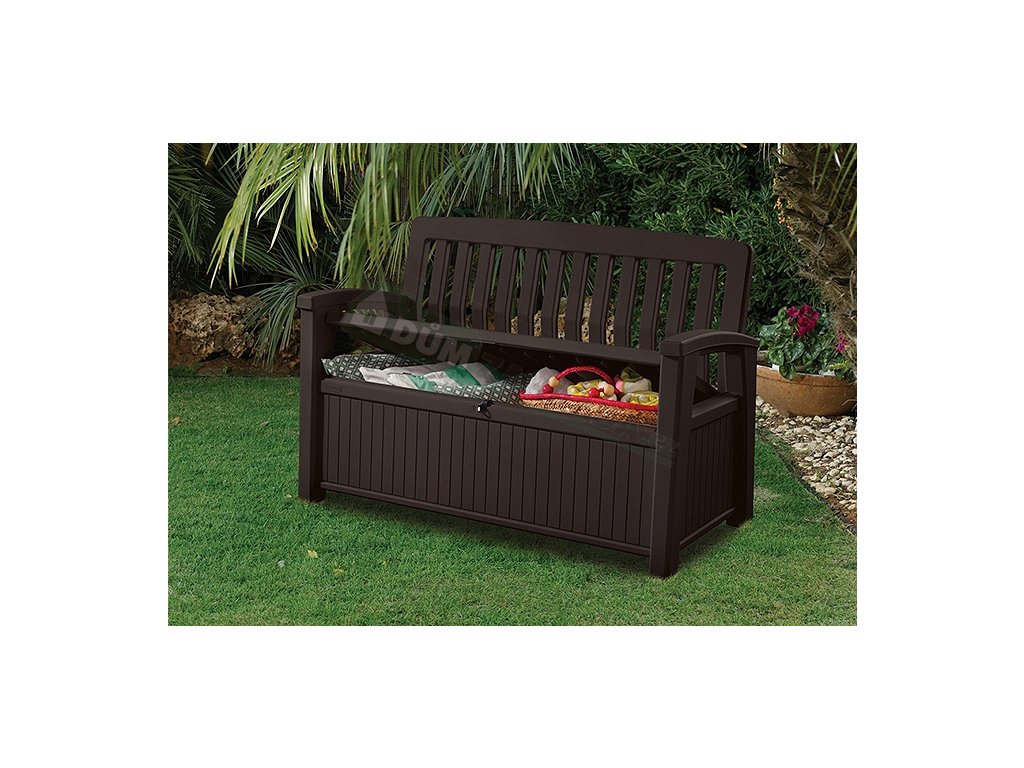 Zahradní lavička disponuje prostorem s objemem 227 litrů, který najde své uplatnění při uložení zahradních předmětů. Lavice může být opatřena visacím zámkem, který zároveň zajistí bezpečnost uloženého obsahu.