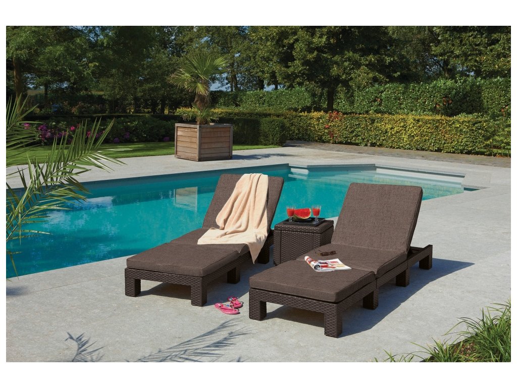 Lehátko Daytona Brown je vyrobeno z vysoce kvalitních plastů se strukturou přírodního ratanu, díky čemuž je prakticky bezúdržbové a je odolné vůči měnícím se povětrnostním podmínkám. Opěradlo je nastavitelné ve 4 polohách a lze jej i sklopit naplocho. Lehátko je vybaveno pohodlným polštářem, který výrazně zvyšuje jeho pohodlí. Ideální na zahradu a pro veřejná zařízení (hotely, aquaparky, lázně).