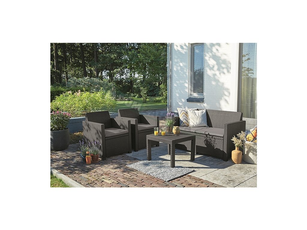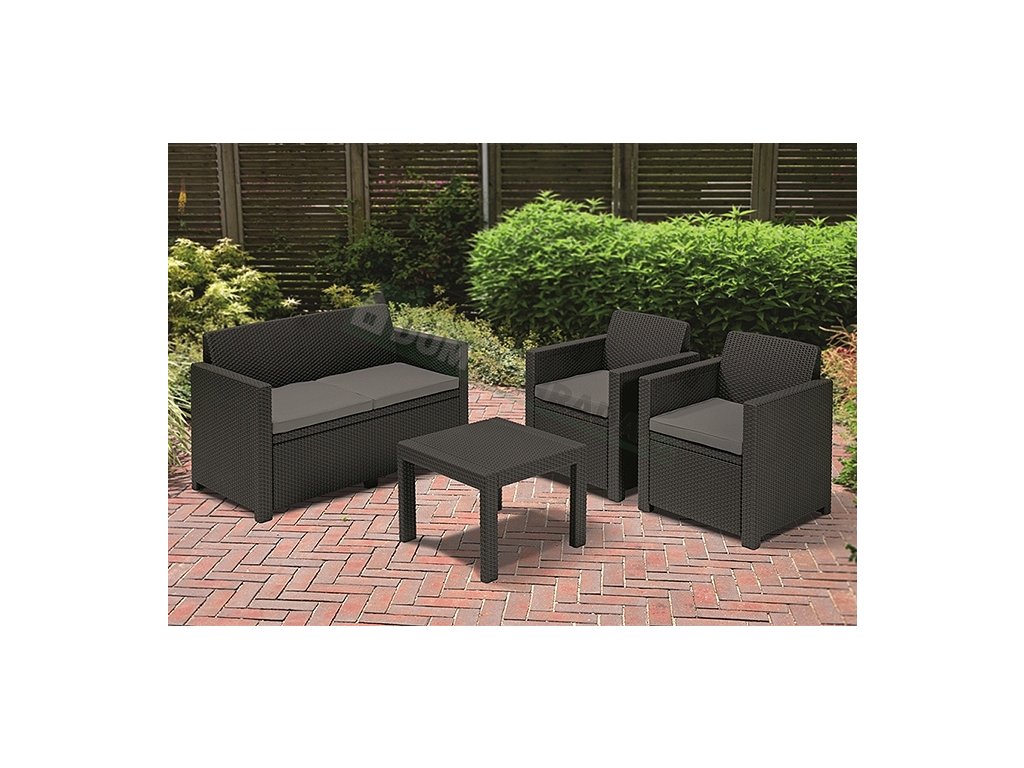 Vaše požadavky na kvalitní materiál i moderní vzhled dokáže vyplnit souprava ALABAMA v provedení umělého ratanu v barvě antracit, který dokonale imituje přírodní ratan. Komfortní sedací souprava se skládá z dvou křesel, stolu, sofa a je dodávána včetně pohodlných podušek.