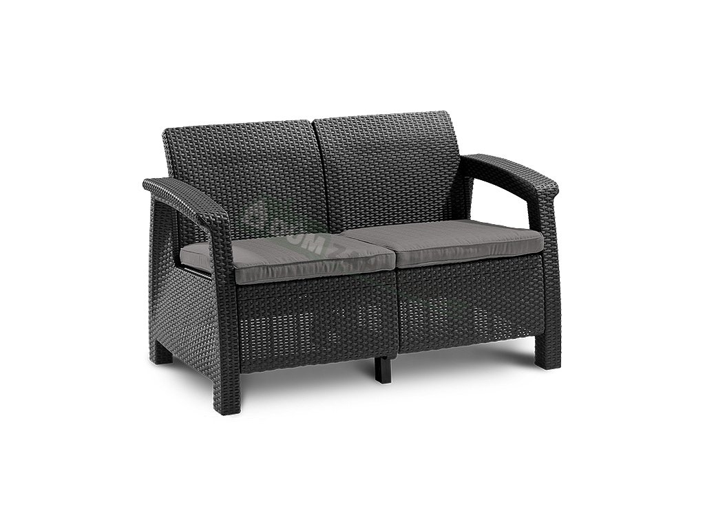 Pohodlný a estetický zahradní komplet Corfu Graphite se vyznačuje vysoce kvalitním zpracováním. Komplet v šedém prvovedení tvoří 2 křesla společně se stolkem a sofa vyrobeným z polypropylenu v imitaci příprodního ratanu. Díky použitým materiálům je komplet odolný vůči povětrnostním vlivům i UV záření. Pro větší pohodlí je komplet doplněn o polstrované sedáky a opěrky v šedém provedení. Tato sestava nábytku Allibert Corfu Graphite je idálním doplňkem pro pohodlné trávení času v zahradách nebo na terasách.