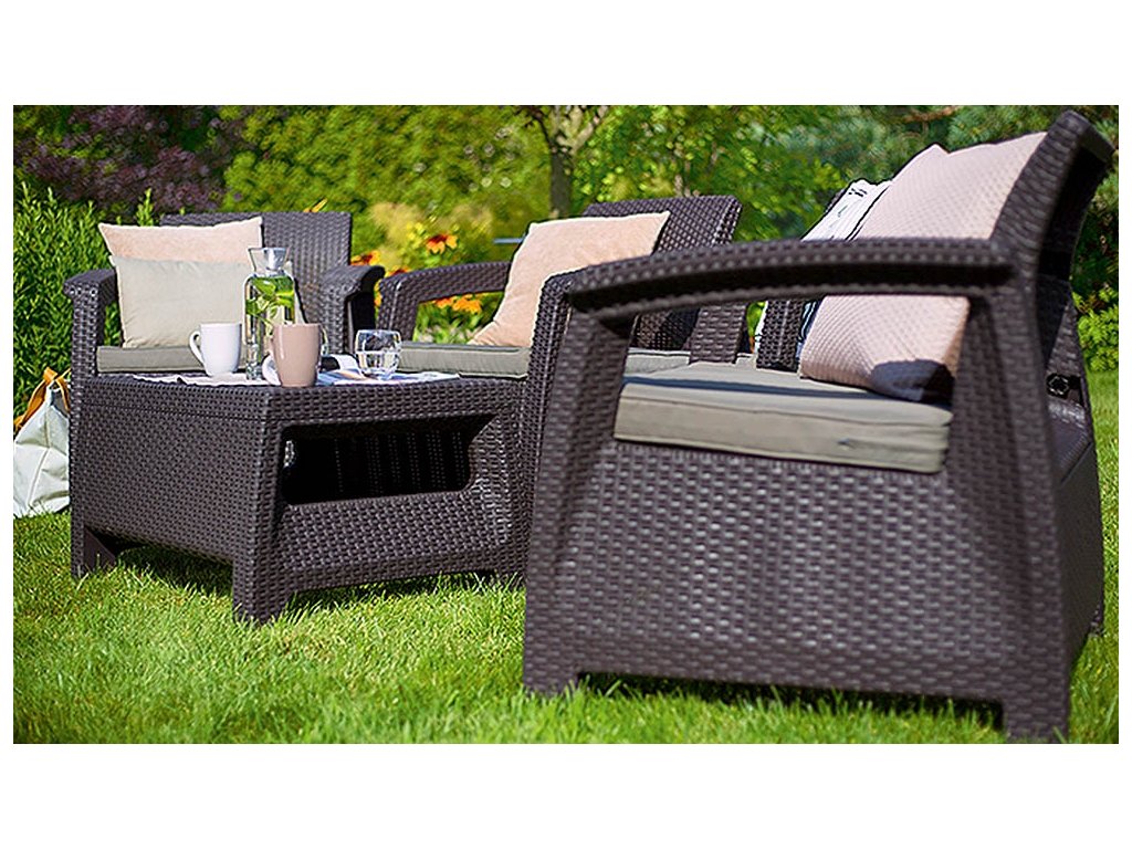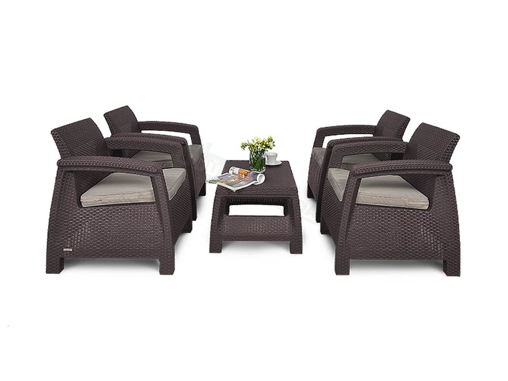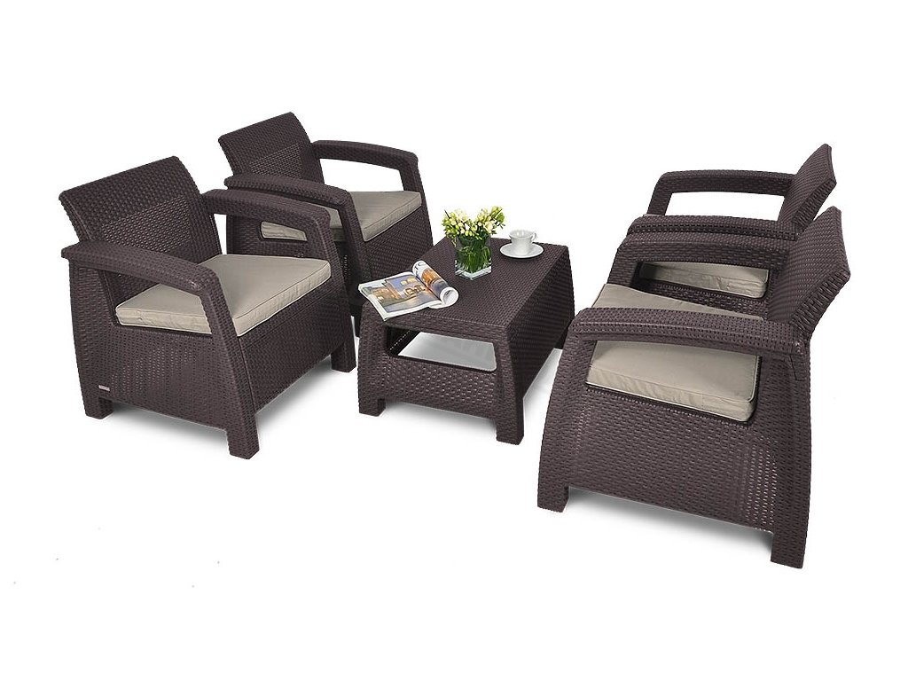 Zahradní komplet Corfu Quattro Brown sestávající ze 4 pohodlných křesel s měkkými polštáři se vyznačuje vysoce kvalitním zpracováním. Set je možné použít jako komplet a nebo odděleně na jednotlivé segmenty dle potřeby a umístění. Celý komplet je z řady výrobků Corfu, díky čemuž je možné ho kombinovat a doplňovati s dalšími segmenty stejné línie Corfu Allibert. Při výrobě jsou použity materiály velice odolné vůči povětrnostním vlivům i UV záření. Tato sestava nábytku Allibert Corfu Quattro je ideálním doplňkem pro pohodlné trávení volného času.