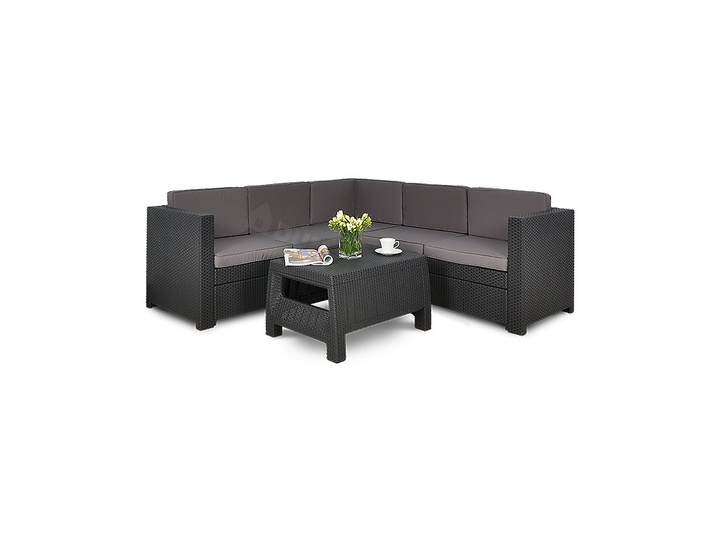 Souprava je vyrobena z vysoce odolného polypropylenu, který může být vystaven nepříznivému počasí, dešti i UV záření, zároveň slibuje dlouhou životnost. Komplet tak může být ponechaný venku po celou sezónu bez obav z poškození.