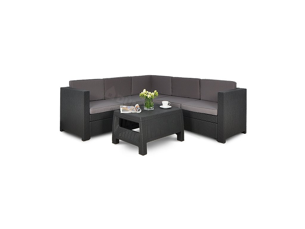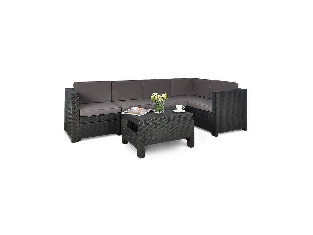 - komplet obsahuje 3 rohové moduly, 2 středové moduly a stolek