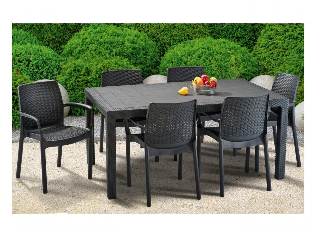 Zahradní set BALI/MELODY Brown je vyroben z vysoce kvalitního polypropylenu s přírodní strukturou ratanu. Set se skládá z 6 pohodlných židlí a mimořádně funkčního velkého stolu. Deska stolu má otvor pro deštník, který lze zavřít zátkou. Nábytek je odolný vůči měnícím se povětrnostním podmínkám. Židle mají zespod na nohou protiskluzovou úpravu, která brání smýkání na mokrém a vlhkém povrchu. Židle lze také na sebe naskládat pro pohodlné uskladnění šetřící místo.