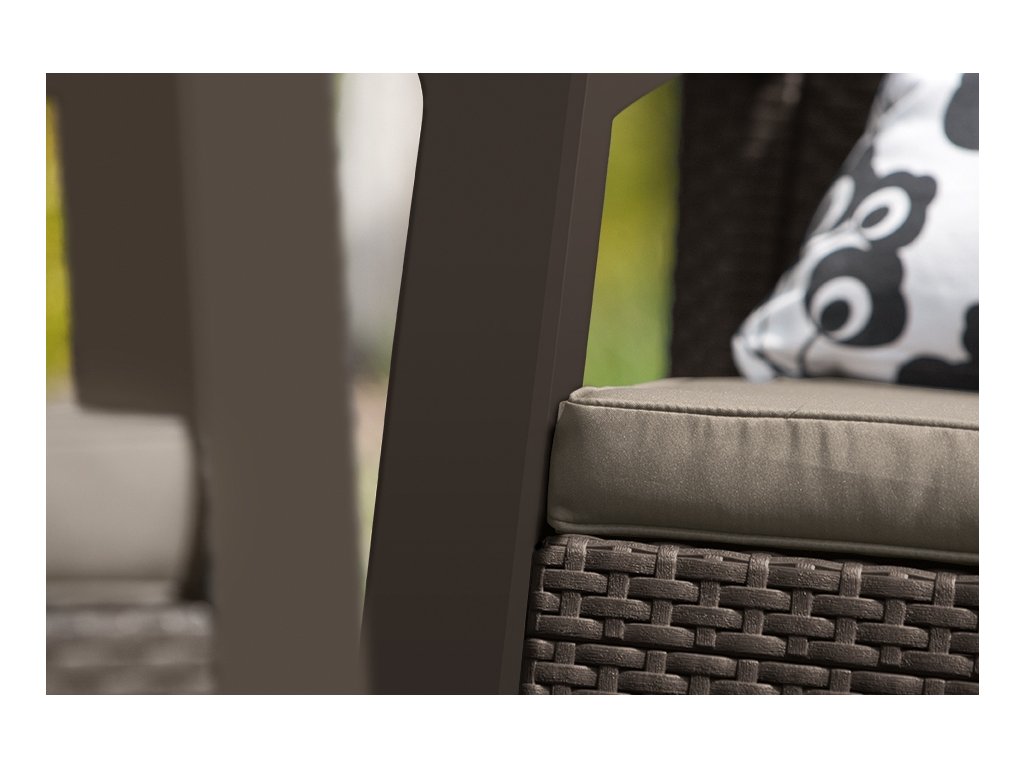 Souprava BAHAMAS Duo graphite je vyrobena z vysoce kvalitního polypropylenu, který je odolný proti nepřízni počasí, dešti i UV záření a vyniká vysokou životností.