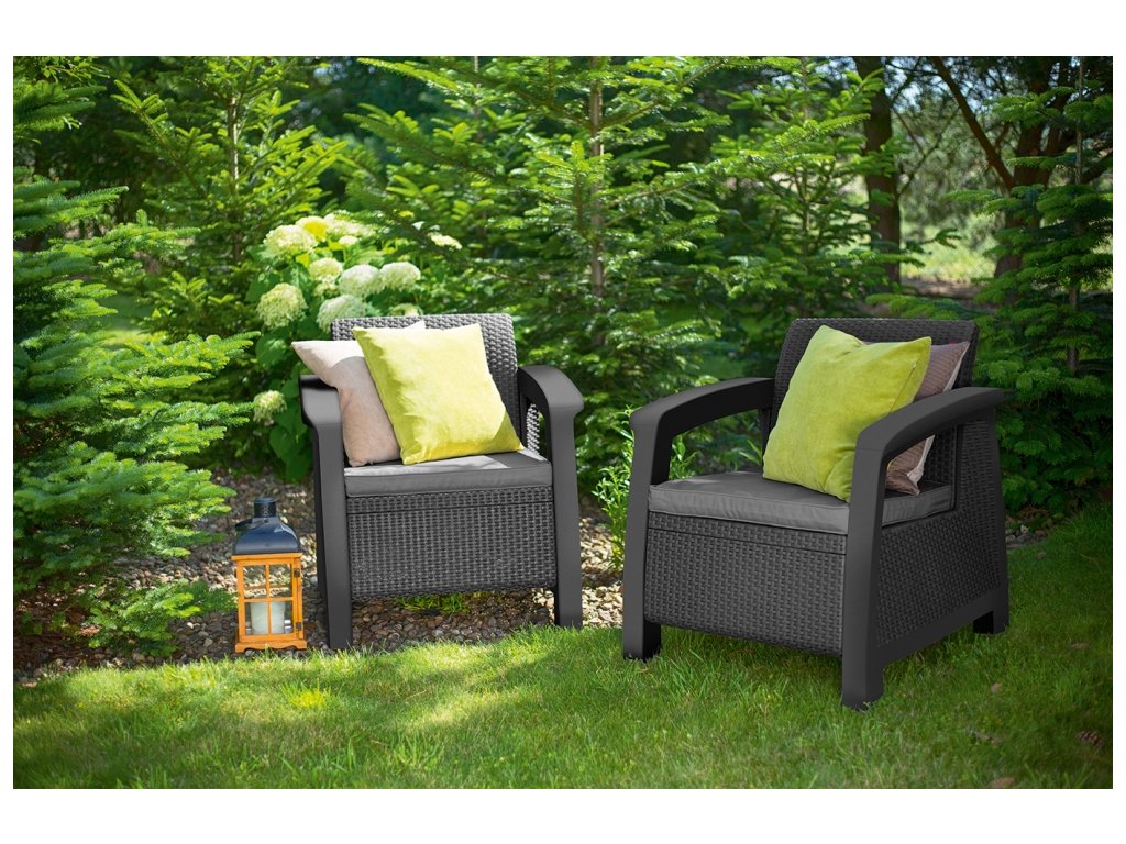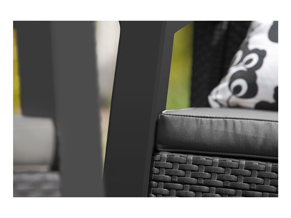 Souprava BAHAMAS Duo graphite je vyrobena z vysoce kvalitního polypropylenu, který je odolný proti nepřízni počasí, dešti i UV záření a vyniká vysokou životností.