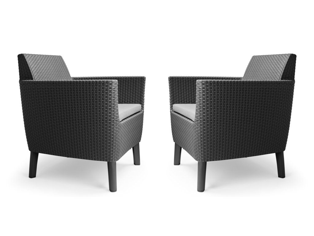 Zahradní set KETER Salemo DUO je souprava v imitaci ratanu, která skvěle vynikne nejen venku, ale i v moderní či klasicky zařízené domácnosti. Set zahrnuje dvě pohodlná křesla s měkkými poduškami a skvělým designem. Pevná ale lehká a stabilní konstrukce nábytku se skvěle hodí do exteriéru i interiéru. Nábytek je vysoce odolný proti UV záření a vlivům nepříznivého počasí. Jeho velkou výhodou je i jednoduchá údržba, snadné sestavení a manipulace.