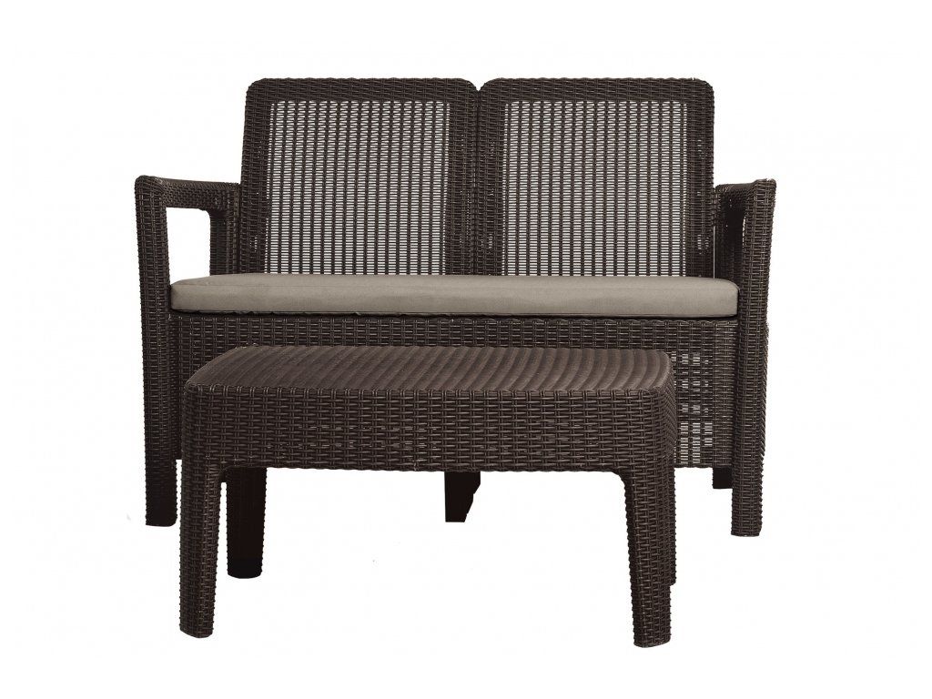 Zahradní set TARIFA je nábytková souprava s jemně zaoblenou povrchovou texturou imitující ratanovou vazbu. Set se skládá z dvousedadlové pohovky a obdélníkového stolu. Souprava nábytku se vyznačuje dlouhou životností a odolností vůči povětrnostním podmínkám i UV záření. Její elegantní design zkrášlí každou zahradu, terasu či balkón.