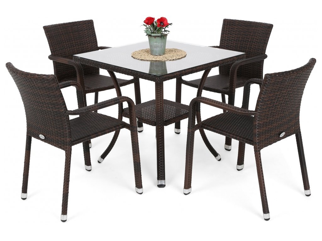 Zahradní set SUMBA 4+1 Brown je vyroben z vysoce kvalitního polypropylenu se strukturou imitující přírodní ratan. Set se skládá ze 4 pohodlných židlí a mimořádně funkčního velkého stolu se skleněnou deskou a odkládací plochou vespod.