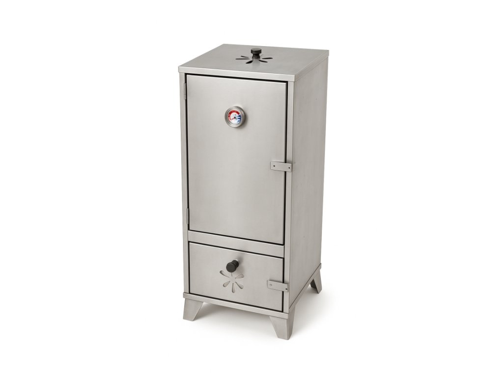 Prostorná udírna z kvalitní nerezové oceli pro úpravu pokrmů jako je maso, ryby, sýry atd. Uzení teplým i studeným kouřem.