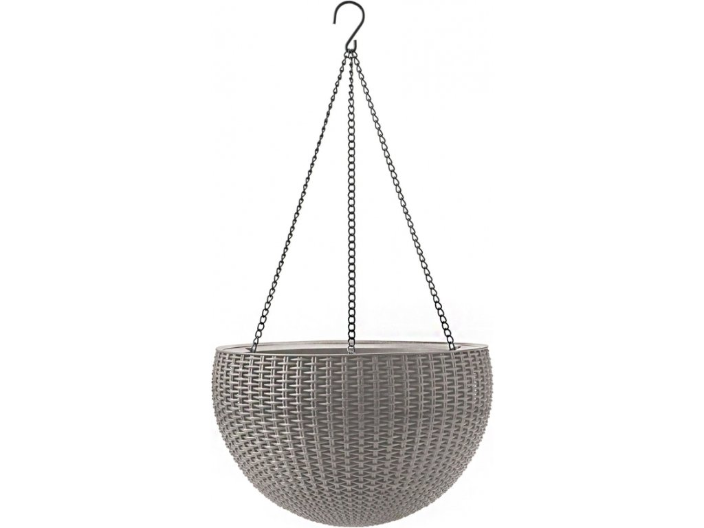 Závěsný květináč KETER Hanging Sphere v šedém provední se díky svému designu napodobující přírodní pletený ratan hodí nejen do každé domácnosti, ale i do pergol a na balkóny. Je vyroben z kvalitních plastů odolných vůči povětrnostním vlivům a slunečnímu záření, díky čemuž si udrží svůj originální vzhled po velmi dlouhou dobu. Drenážní systém květináče se stará o přebytečnou vodu a rostlinu tak udržuje v ideálních podmínkách.