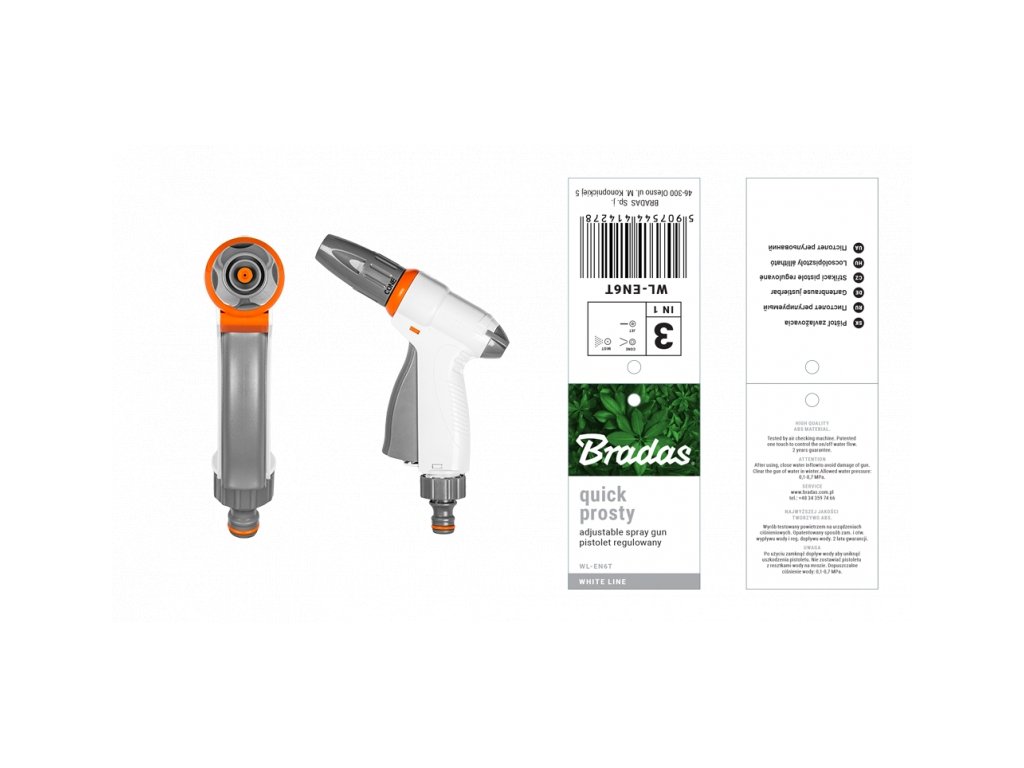 Pistole WHITE LINE QUICK STRAIGHT kombinuje jednoduchý design s výbornou funkčností. Nabízí tři základní režimy rozstřiku, které snadno přizpůsobíte konkrétnímu účelu – od jemné mlhy až po silný proud. Díky rychlospojce ji připojíte během několika vteřin a ergonomická rukojeť zaručí pohodlné držení.